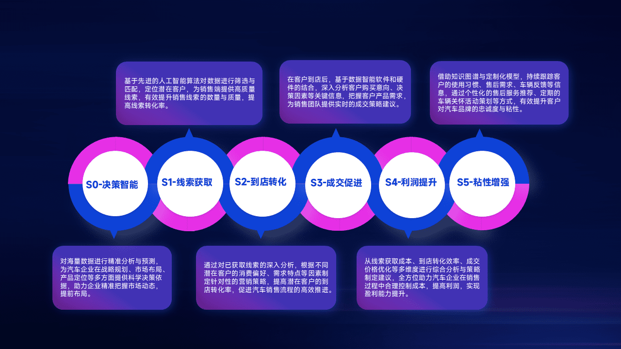 通过拓宽潜在客户来源、、优化线索分配并提高到店转化率,,,,以增强销售效率。。。。同时,,,,利用线索数据不断优化分析模型,,,,有效提升转化率,,扩大营销影响力。。。